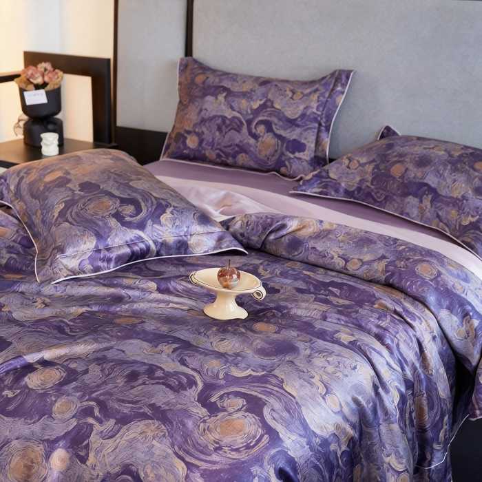 Phòng ngủ của bạn nên phản ánh gu thẩm mỹ của bạn.. sử dụng công nghệ in kỹ thuật số tiên tiến, Chúng tôi ghi lại những họa tiết phức tạp với độ chi tiết và chiều sâu màu sắc vượt trội.. Phương pháp này đảm bảo mỗi thiết kế đều sắc nét., sống động, và liên kết trực tiếp với tơ tằm, mang đến một mức độ nghệ thuật cá nhân hóa mà các kỹ thuật truyền thống không thể có được..